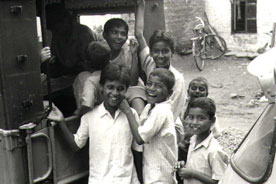 Local boys and Yusyf Jeepwalla's jeep