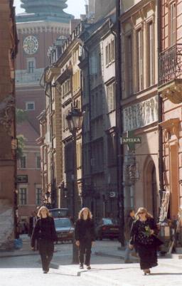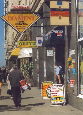 | The old city was rebuilt after the war; a monument to the indestructibility of the Polish soul? Today the parties of schoolchildren giggle and look as always; and now they are dressed like children everywhere. Youths in baggy shorts, flash T-shirts and cropped hair. Techno posters and CDs. Could be anywhere... | ![]() |
