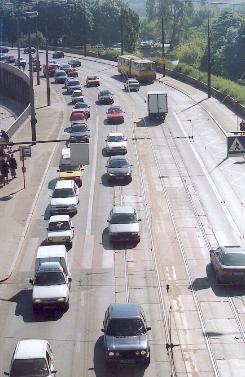 | The streets are now lined with Fiats, Renaults, Citroens, Volkswagens, Fords, and the odd Mercedes. Dusty from the Polish sand-soil, but shining through. The roads are still bumpy and uneven, but the signs are bright and the traffic moves and drivers obey the traffic signals. I could have been in any French city, except for the traffic stopping to let pedestrians cross the road. | ![]() |